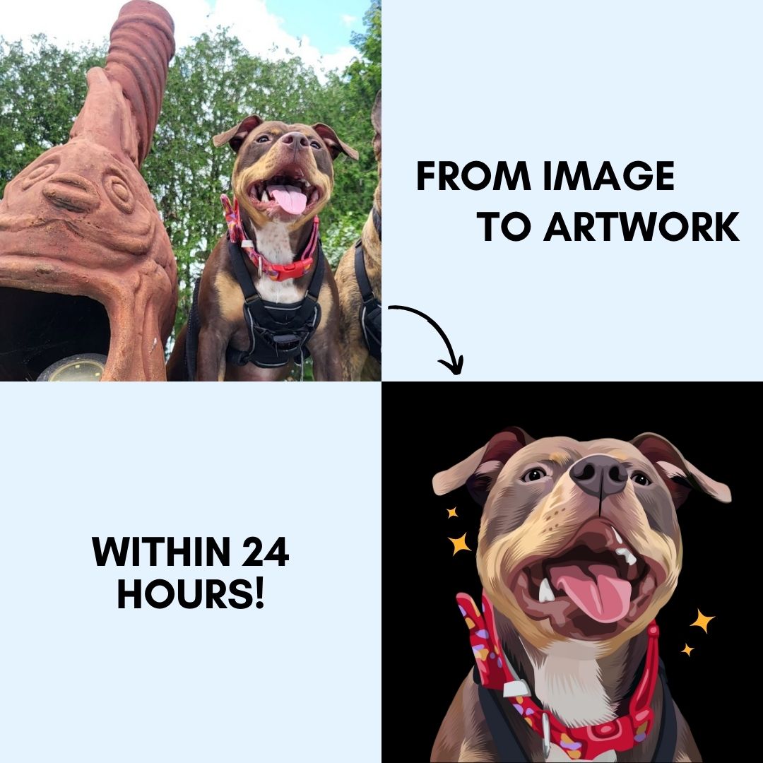 Transform your beloved pet into a stunning cartoon illustration featured on our products! Simply upload your pet's image and see the magic happen.